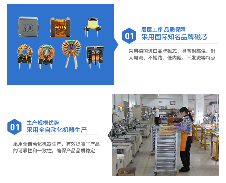 1.采用鐵粉芯、錳鋅、鐵硅鋁、非晶等等材質,以產生超大的電感量,高電流,防干擾對策
